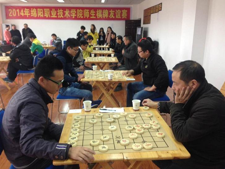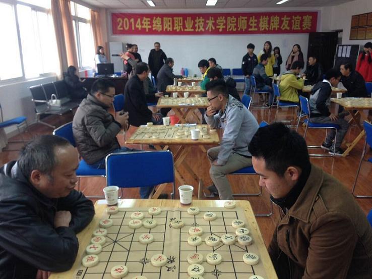 为丰富师生课余生活,提高师生的棋弈水平,增进了师生之间的沟通和友谊。学院工会联合团委于2014年11月19日和26日在学院行政楼举办了绵职院师生中国象棋比赛。